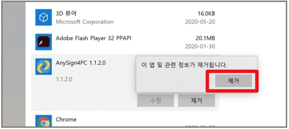 anysign for pc 제거 방법