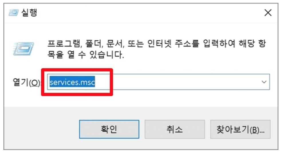 2. 실행파일에서 Services.msc 를 입력해 줍니다.