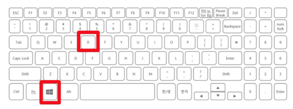 1. 키보드 윈도우키+R 를 눌러줍니다.
